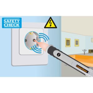 Ovaj beskontaktni ispitivač napona pruža visoku razinu industrijske sigurnosti otkrivanjem postojećih izmjeničnih napona. Uređaj utvrđuje polaritet L- ili N-vodiča, detektira kabele pod naponom i locira električne napone u kabelima, utičnicama, grlima za žarulje i osiguračima. Prekidi kabela mogu se učinkovito identificirati. Njegov kompaktni dizajn, dobro vidljivi LED indikatori i integrirana svjetiljka čine ga vrlo praktičnim alatom.